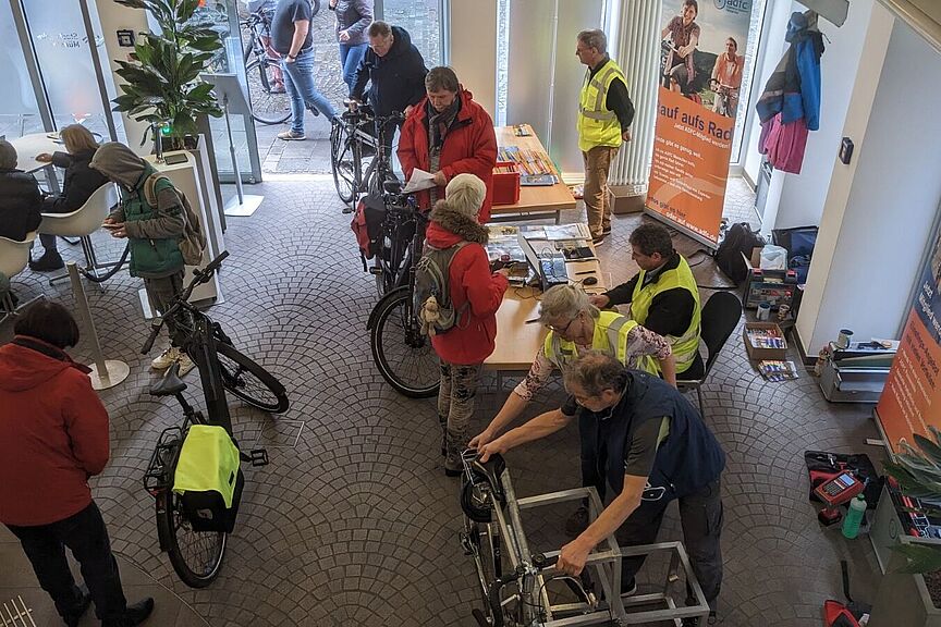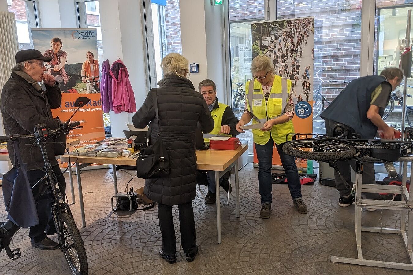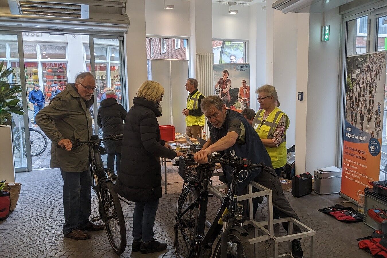 Nebenbei ergaben sich interessante Gespräche mit den Besuchern über die nächste Radtour oder die nächste mehrtägige Radreise am ADFC Infostand, denn Urlaub im Sattel erfreut sich wachsender Beliebtheit in Deutschland. Hierzu bot der ADFC sein neues Radtourenprogramm mit 633 Touren an, verteilte „Deutschland per Rad entdecken“ und hielt viele Radkarten und Radausflugsführer vor. Am Ende waren so alle zufrieden, auch die Leitung des Cityshops, Frau Veronika Schulze-Zumloh, die sich schon jetzt auf den nächsten Codiertermin am 17. Mai im Cityshop (www.adfc-ms.de/codierformular) freut und auf den tollen Zuspruch der Aktion.
