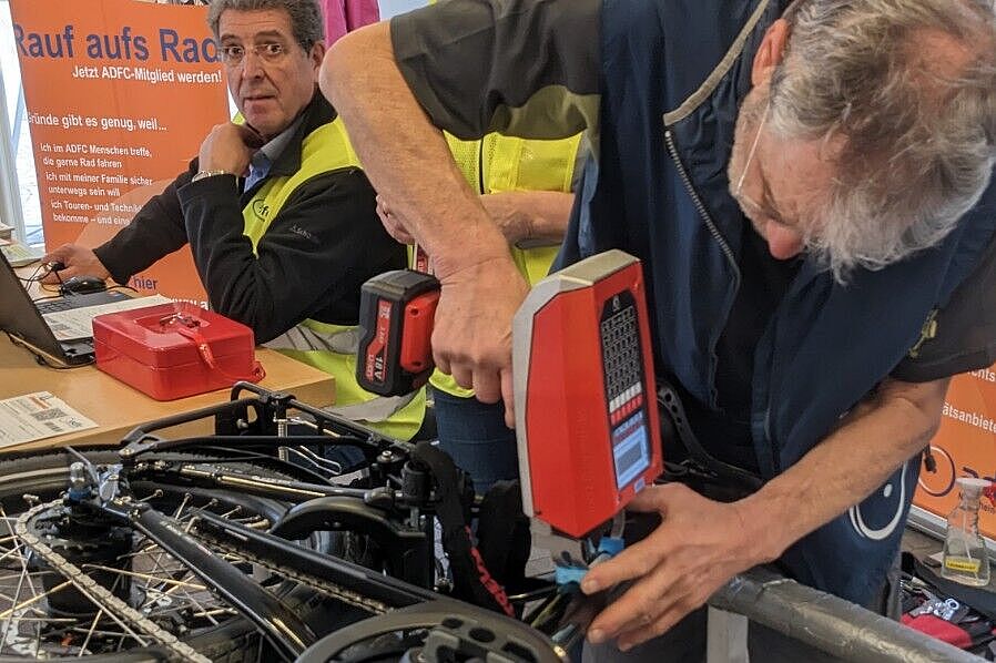 Nach einer langen Durststrecke durch Corona, konnten wir nach gut drei Jahren endlich wieder an unsere traditionellen Codier-Aktionen im Frühjahr mit den Stadtwerken Münster, unserem ADFC-Fördermitglied, anknüpfen. Der enorme Zuspruch zeigt einmal mehr, dass die Radler verstehen, dass die EIN Codierung wie sie der ADFC mit der Polizei entwickelt hat, eine der besten Methoden ist seine Leeze vor Langfingern zu schützen. Denn die Einstanzung des Codes, der den Halter ohne Rechner ermitteln lässt, kann nicht einfach entfernt werden, Selbst wenn der Code abgeschliffen wird, lässt sich dieser per Infrarot noch immer auslesen. Dies schreckt jeden Dieb ab, denn er will ja das Rad möglichst schnell auf Flohmärkten oder im Internet wieder zu Geld machen.
